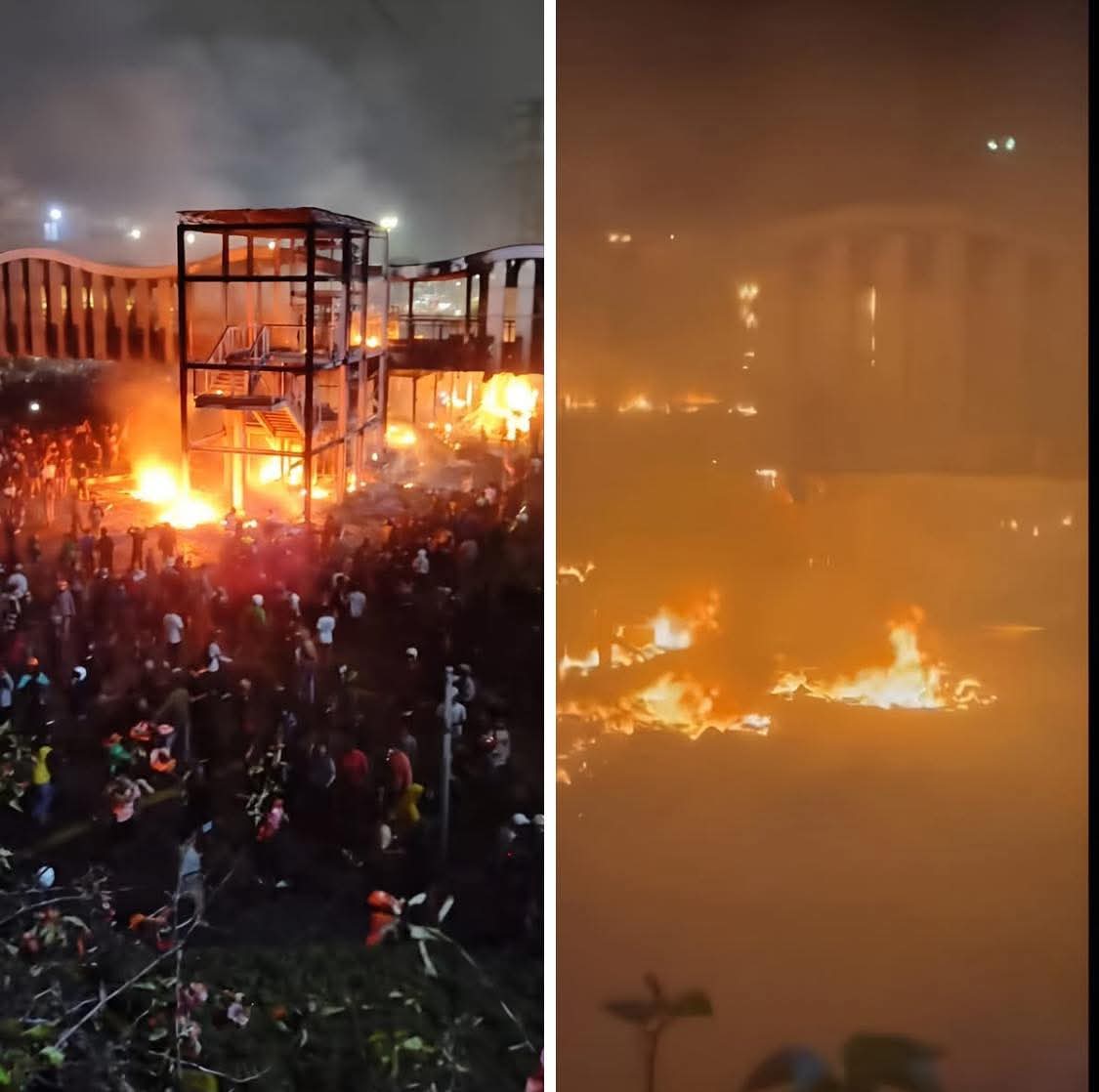 Sementara itu, halte Transjakarta di depan Polda Metro Jaya juga dibakar massa.