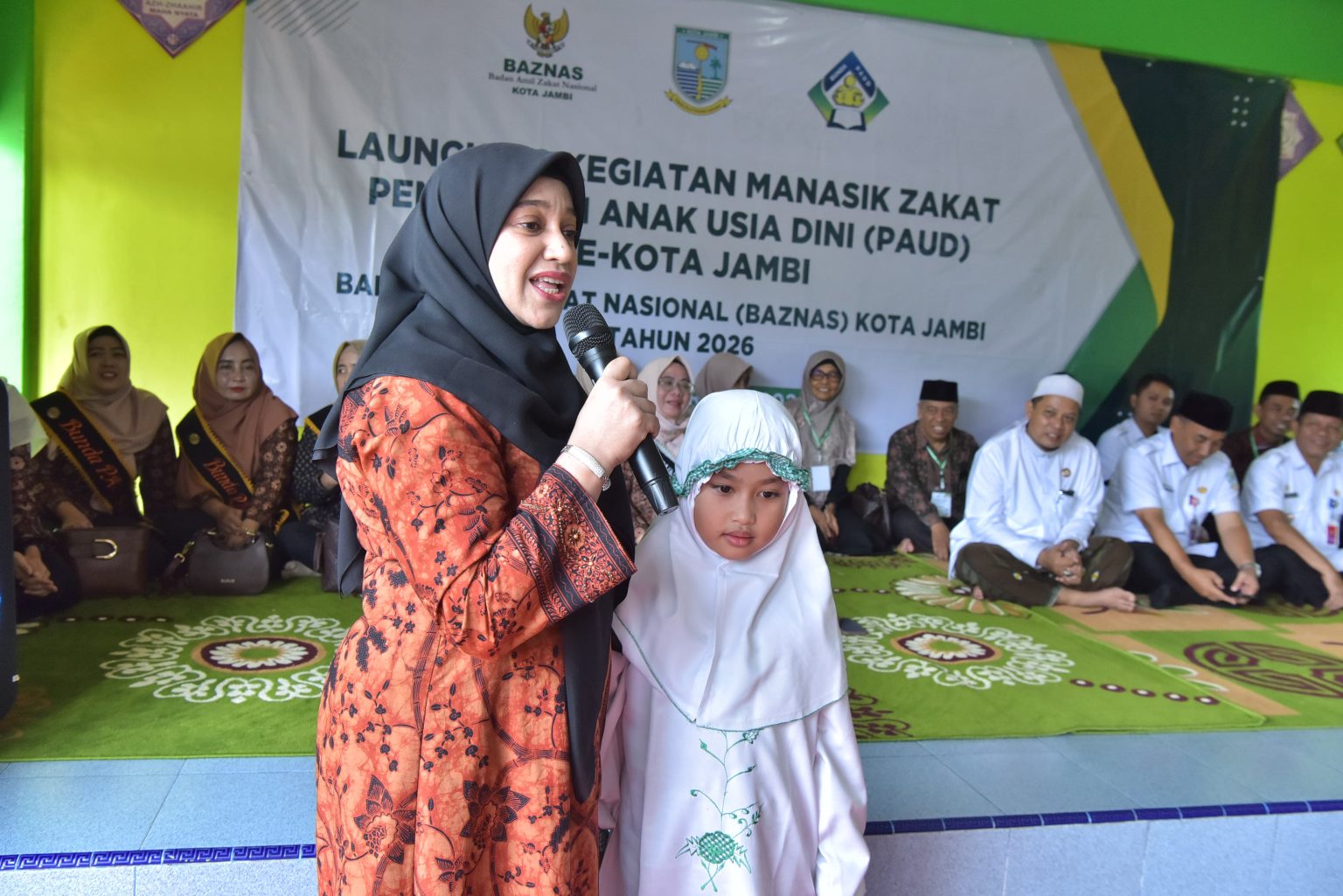RADARNESIA.COM – Sebagai upaya memupuk rasa solidaritas dan gemar berbagi sejak usia dini, Bunda PAUD sekaligus Ummi Raudhatul Athfal (RA) Kota Jambi, Dr. dr. Hj. Nadiyah, Sp.OG., membuka kegiatan Implementasi Manasik Zakat pada satuan PAUD se-Kota Jambi, Rabu (04/03/2026).