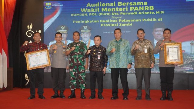 Jambi – Komitmen untuk meningkatkan kualitas pelayanan publik di Provinsi Jambi semakin ditegaskan melalui kegiatan audiensi bersama Wakil Menteri Pendayagunaan Aparatur Negara dan Reformasi Birokrasi (PANRB), Komjen Pol (Purn) Purwadi Arianto, M.Si, bertempat di Auditorium Rumah Dinas Gubernur Jambi, Rabu (18/9/2025). Acara strategis ini dihadiri oleh sejumlah pejabat penting, di antaranya : – Dr. Otok […]