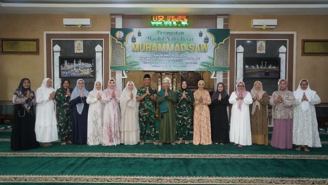 Jambi – Korem 042/Gapu menggelar Memperingati Maulid Nabi Muhammad SAW 1447 H/2025 M dengan tema “Membangun Karakter Personel TNI Prima Melalui Sunnah Rosulullah”, Bertempat di Mesjid At-Taqwa Makorem 042/Gapu, Rabu (17/9/2025). Sambutan Danrem 042/Gapu Brigjen TNI Heri Purwanto, S.E., M. SC yang dibacakan oleh Kasi Intel Kasrem 042/Gapu Letkol Inf Ali Cahyono.,S.Kom.,M.Tr.Han menyampaikan ajakan kepada […]