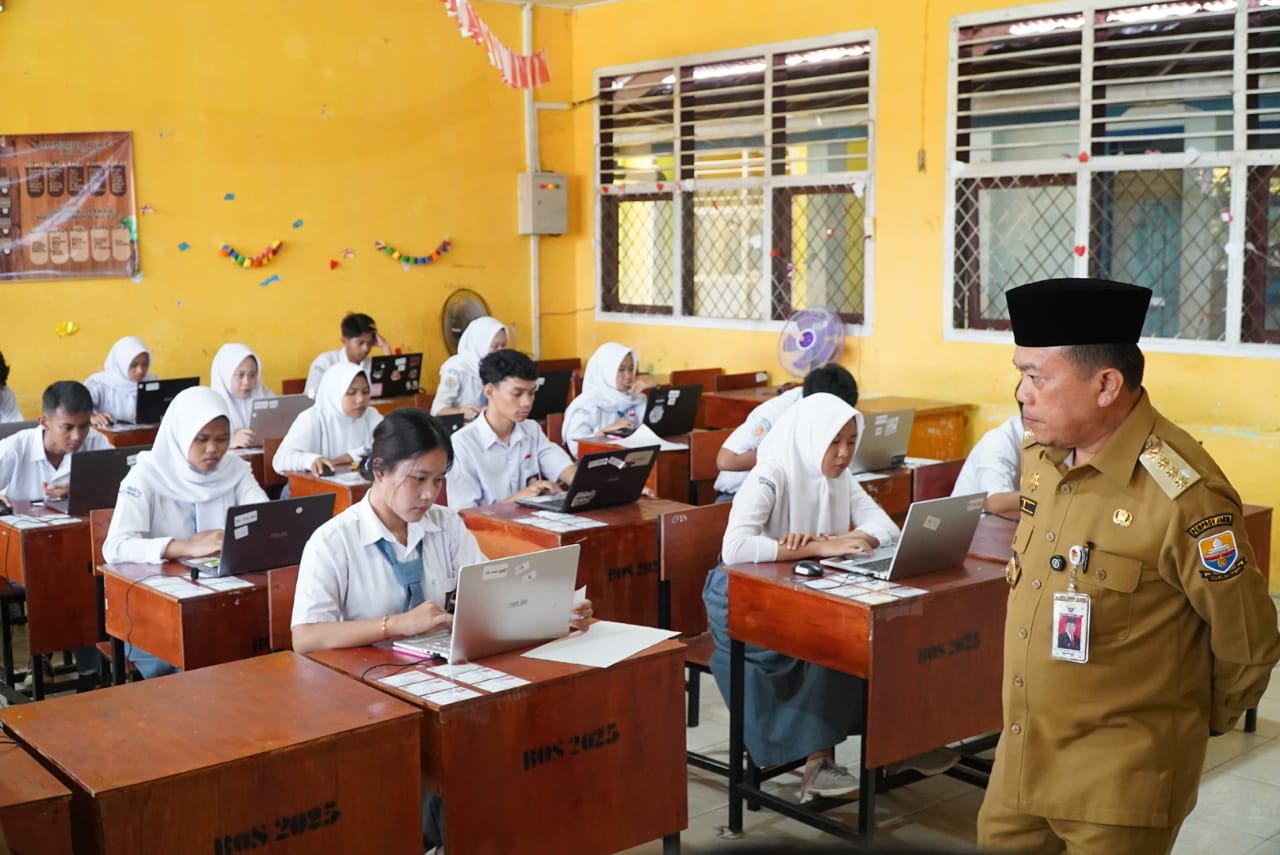 Usai melakukan peninjauan, dihadapan rekan-rekan media Gubernur Al Haris menyampaikan bahwa sesuai dengan instruksi pemerintah pusat pemerintah daerah harus melaksanakan Tes Kemampuan Akademik (TKA) di setiap sekolah. “Pemerintah telah menetapkan pedoman resmi tentang pelaksanaan TKA tahun 2025. Pedoman baru ujian TKA ini disahkan melalui KEPMENDIKDASMEN NO. 95/M/2025. Kepmendikdasmen ini akan menjadi acuan penting bagi siswa yang akan mengikuti seleksi masuk perguruan tinggi. Artinya daerah mempunyai nilai standar yang bisa disamakan diseluruh Indonesia,” ujar Gubernur Al Haris.