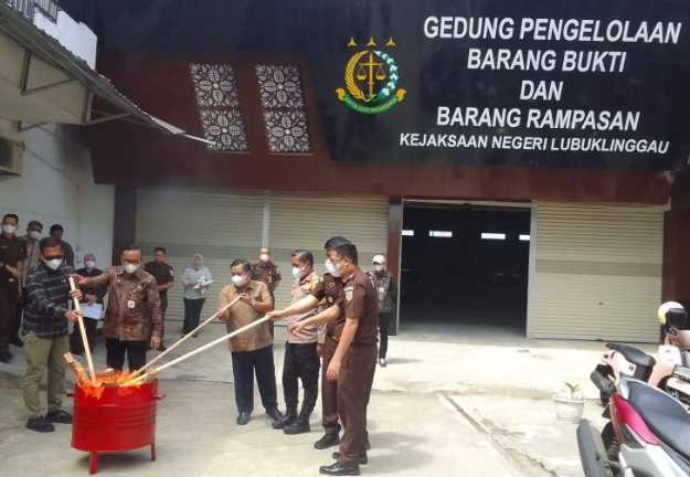 ” Sedangkan narkotika jenis ganja sebanyak 3,43 gram dimusnahkan dengan cara di bakar,” ujar Kepala Kejaksaan Negeri Lubuk Linggau Suwarno melalui Kasi Pidum, Raden Andra Kurniawan didampingi Kasi Pengelolaan Barang Bukti dan Barang Rampasan (PB3R),