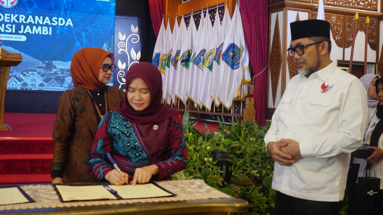 Penandatanganan kerja sama ini berlangsung dalam Rapat Kerja Daerah (Rakerda) Dekranasda Provinsi Jambi yang digelar di Auditorium Rumah Dinas Gubernur Jambi, Rabu (15/10/2025).