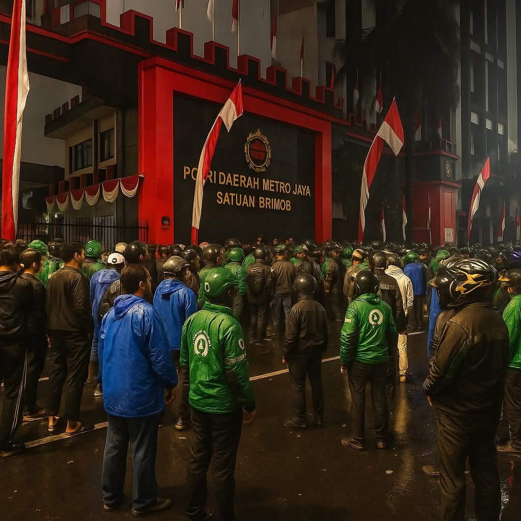 Markas Brimob dikepung suara rakyat kecil yang sehari-hari hanya dihargai lima ribu rupiah per kilometer. Tapi kini mereka menunjukkan harga diri yang lebih mahal dari kendaraan lapis baja.
