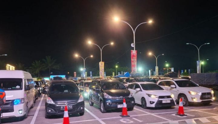 Pantauan di lokasi, pukul 01.30 WIB menunjukkan antrean kendaraan mulai mengular sejak pintu masuk pelabuhan hingga area tunggu naik ke atas kapal (gangway). Kondisi ini menandakan gelombang pemudik yang memilih melakukan perjalanan di waktu malam hari mulai meningkat drastis dibandingkan hari-hari sebelumnya.