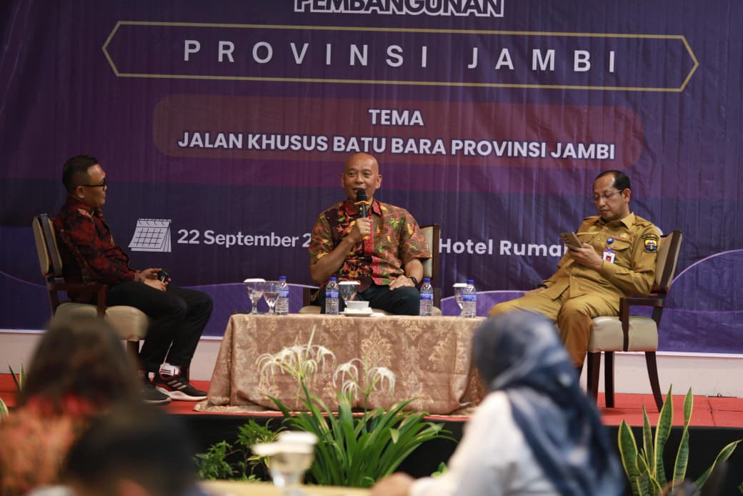 Diskusi ini mengundang narasumber dari perwakilan pemerintah yaitu Asisten Perekonomian dan Pembangunan Provinsi Jambi Johansyah, dan Direktur Utama perusahaan tambang yang sedang membangun jalan khusus PT Sinar Anugerah Sukses, Ridony Gurning.