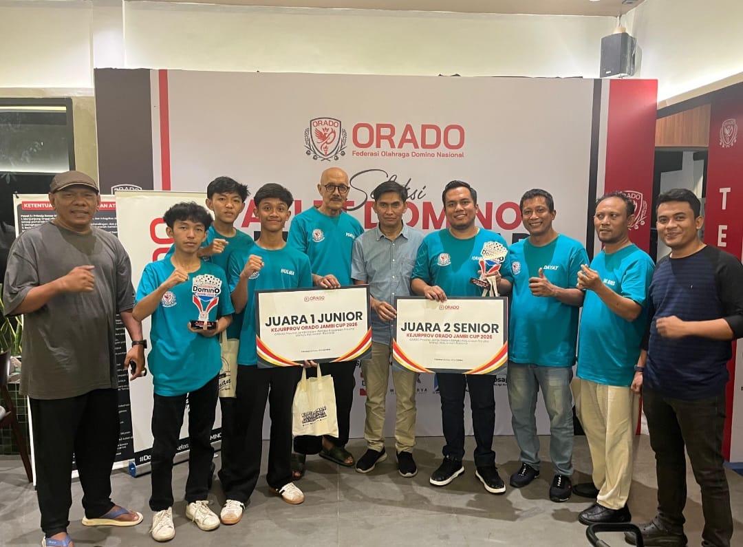 RADARNESIA.COM – Kontingen Federasi Olahraga Domino Nasional (ORADO) Kabupaten Tanjung Jabung Timur sukses menjadi Juara Umum Kejurprov ORADO Jambi Cup 2026 yang digelar di Café Hello Sapa, Sabtu (18/4/2026). Tim berjuluk “Merata Bahagia” itu mengamankan dua piala sekaligus tiket menuju Kejuaraan Nasional di Bogor.