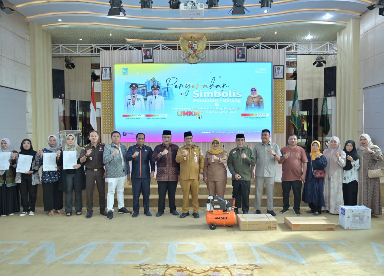 Radarnesia.com – Pemerintah Kota Jambi mengambil langkah strategis untuk memperkuat fondasi ekonomi kerakyatan dan mendukung Usaha Mikro, Kecil, dan Menengah (UMKM). Pada Senin pagi (24/11), Wali Kota Jambi, Dr. dr. H. Maulana, M.K.M., menyerahkan secara langsung bantuan peralatan usaha dan sertifikat halal kepada para pelaku UMKM di Aula Griya Mayang, Rumah Dinas Wali Kota Jambi.
