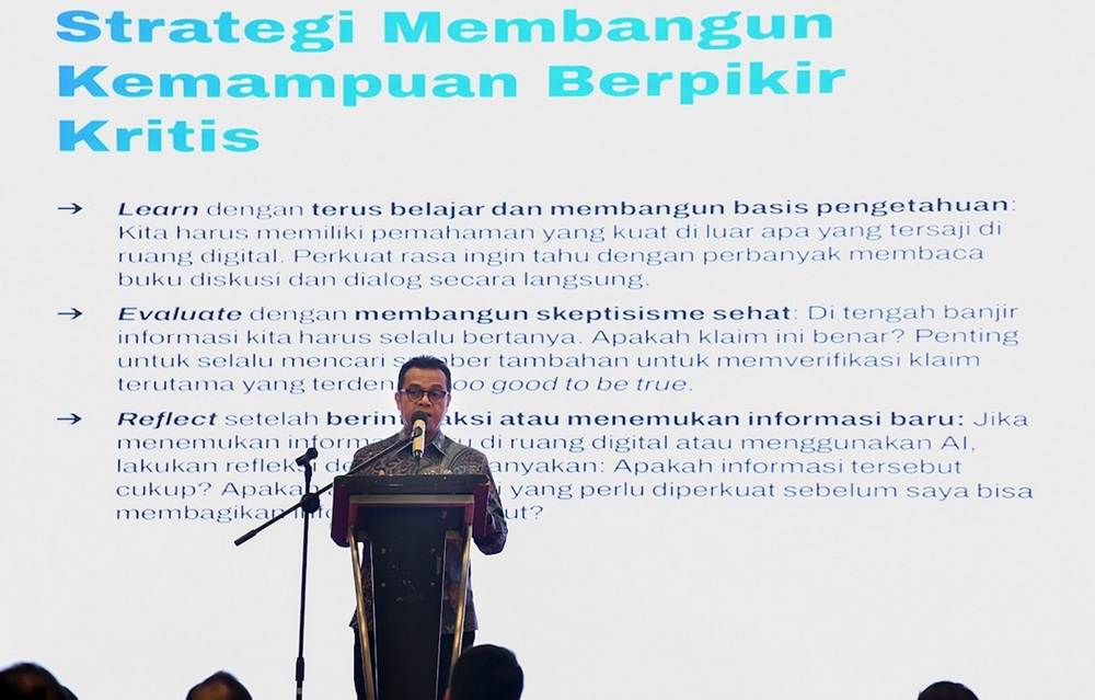 “Hal yang paling penting di dunia digital adalah critical thinking. Kemampuan memilah, menganalisis, dan memverifikasi informasi menjadi keterampilan yang paling berharga. Ini kunci membuat kita waras dan sehat di dunia digital, bukan hanya sebagai penerima pasif,” ujar Wamenkomdigi.